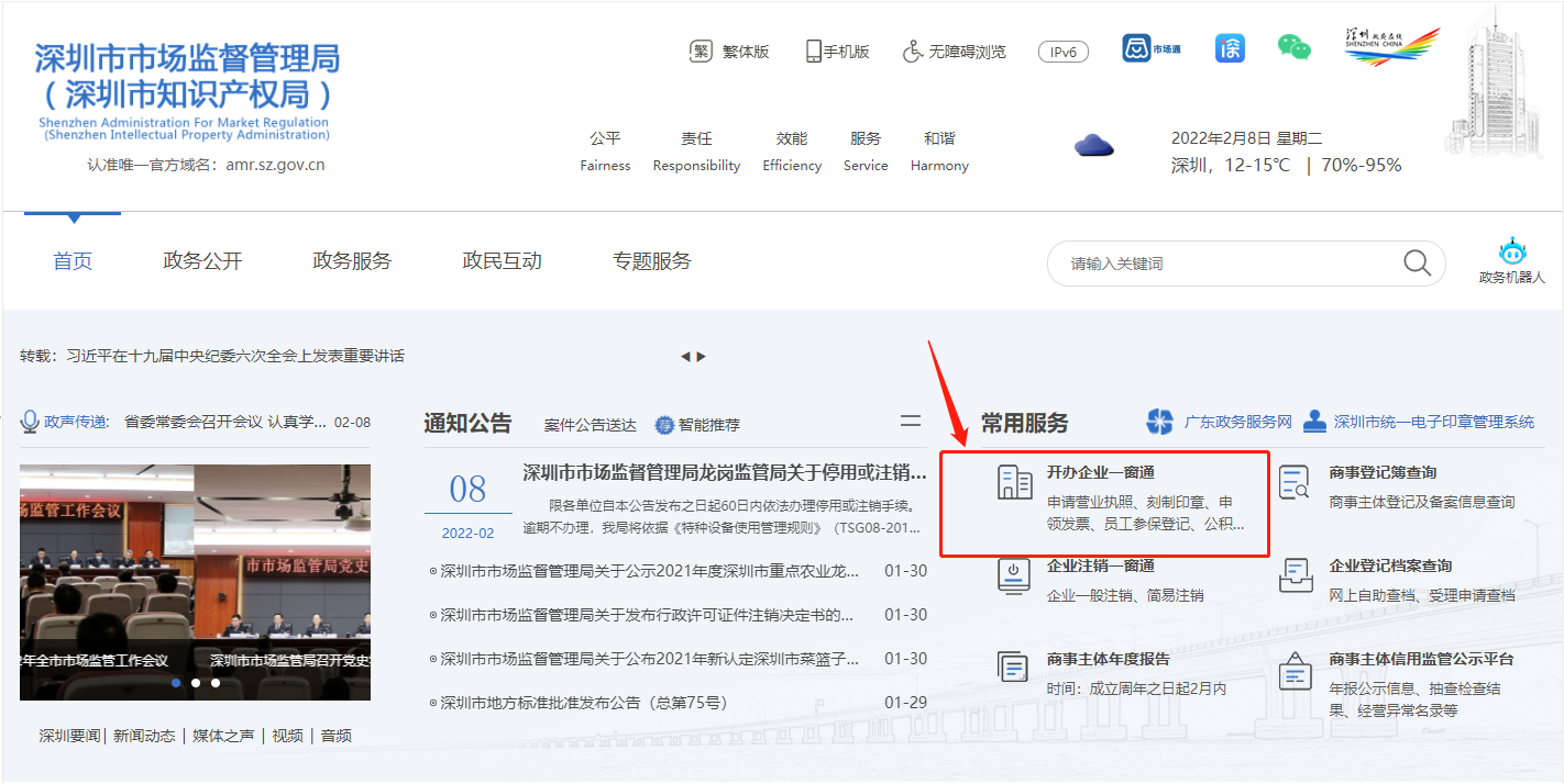 搜索深圳市場(chǎng)監(jiān)管局http://amr.sz.gov.cn/,點(diǎn)擊開辦企業(yè)一窗通按流程一步步操作。