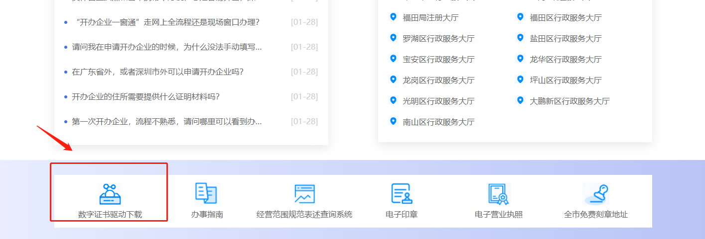 在開辦企業(yè)一窗通頁面底部找到數(shù)字證書驅(qū)動(dòng)下載即可。
