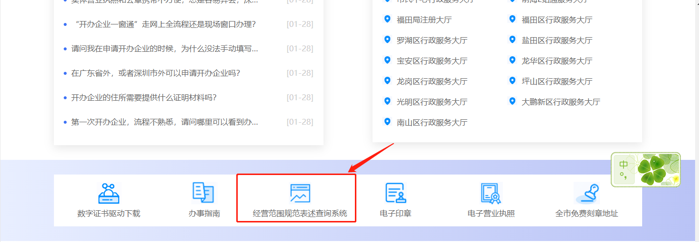 在開辦企業(yè)一窗通頁面底部找到經(jīng)營范圍規(guī)范查詢系統(tǒng)即可查詢。