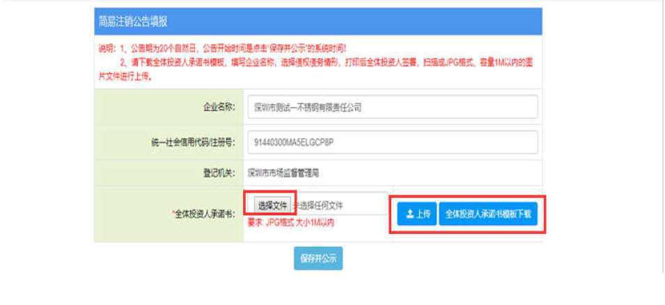 7、先下載承諾書,填寫好法人簽字加蓋公章,拍照或掃描,點擊選擇文件找到承諾書,然后上傳,保存并公示。